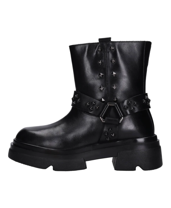 Кожаные ботильоны Emanuelle Vee с заклепками антрацитового цвета. Верх из кожи, подошва из резины. Идеальный выбор для стильной женщины.