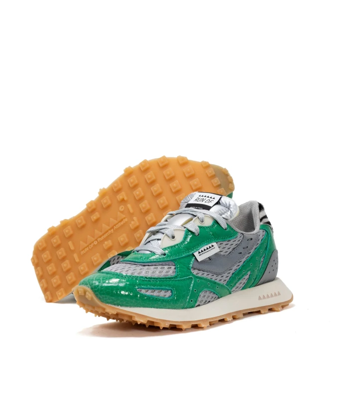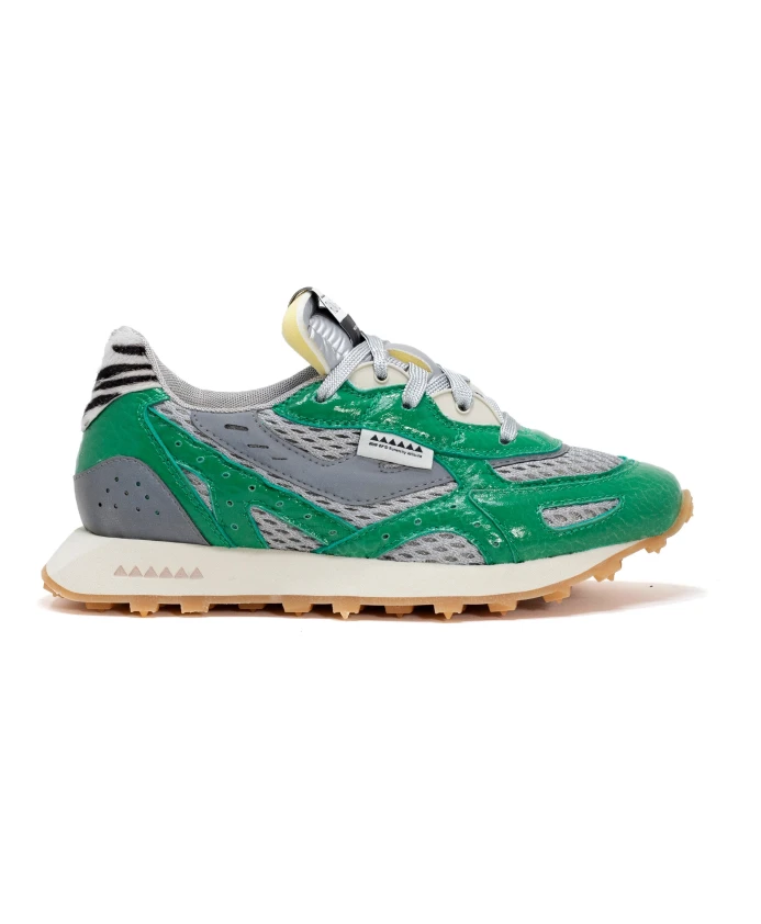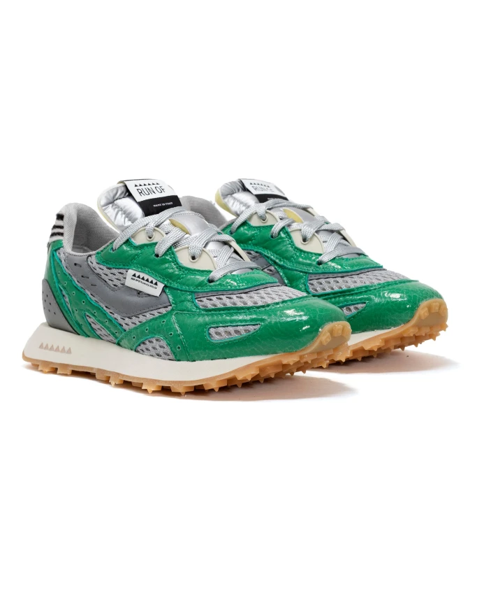 Новые кроссовки KONYA из кожи и синтетической ткани в зелено-сером цвете. Новая круглая подошва в бело-медовом цвете. Сделано в Италии.