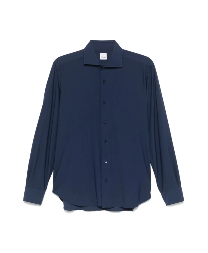 Повседневная рубашка Barba темно-синего цвета для мужчин с застежкой на пуговицы спереди, отложным воротником и манжетами на пуговицах.