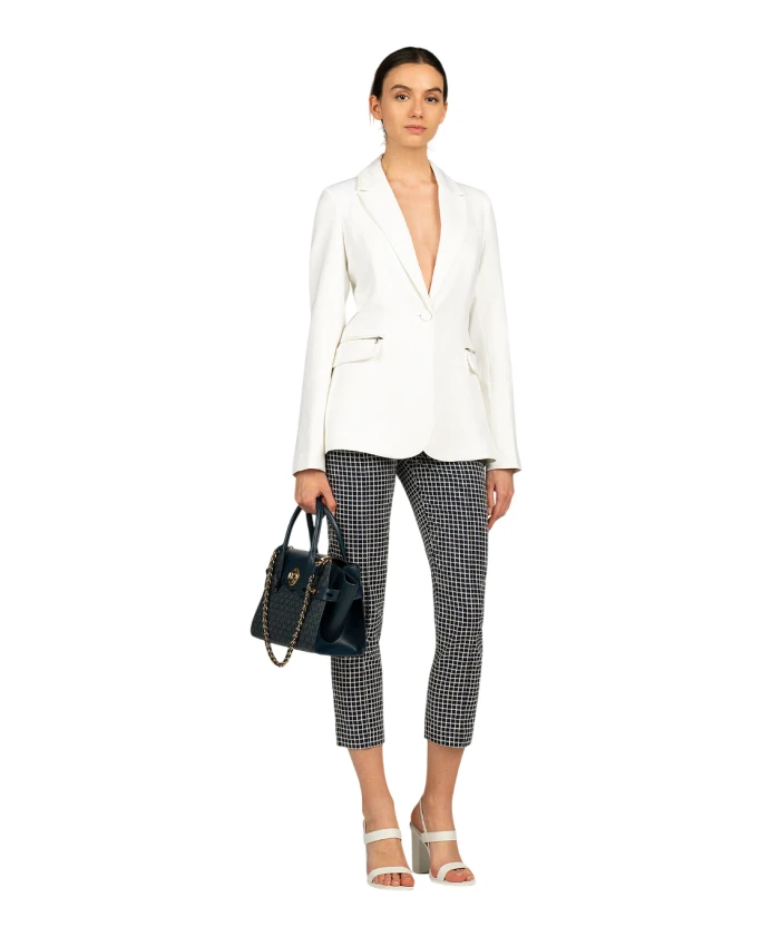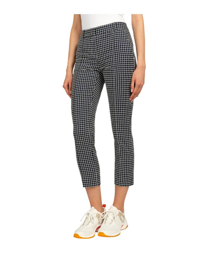 Подчеркните свой образ с помощью этих укороченных брюк Michael Kors для женщин. Узкие хлопковые брюки с клетчатым узором в области икр.