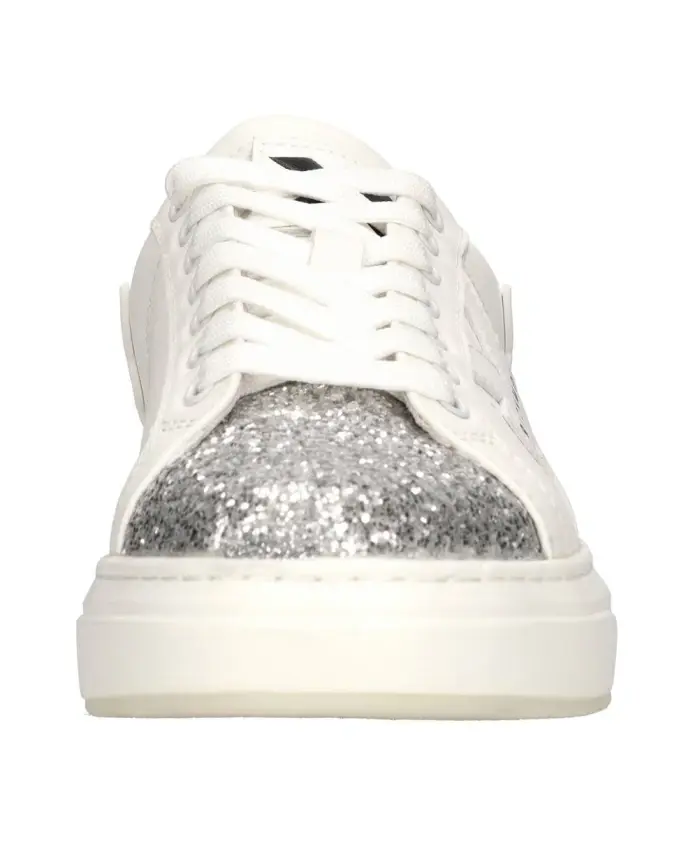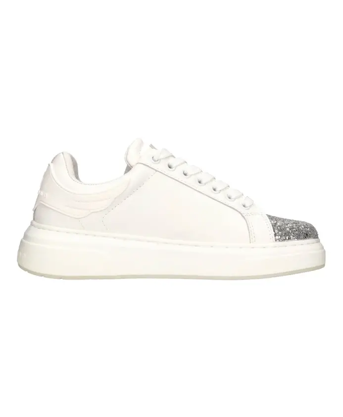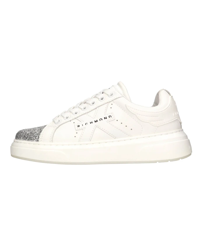 Женские кроссовки John Richmond из кожи и искусственной кожи. Носок с серебристыми блестками. Резиновая подошва. Верх из кожи и ткани.