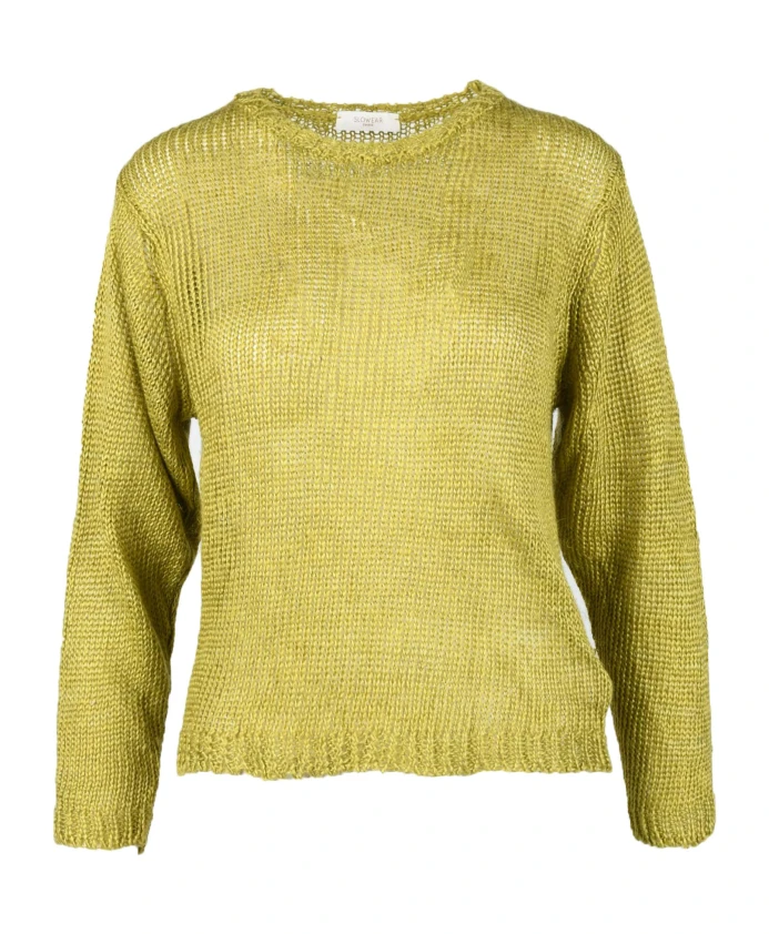 Обновите свой гардероб с помощью этого вязаного свитера с круглым вырезом из 100% льна от SLOWEAR, созданного для современной женщины.