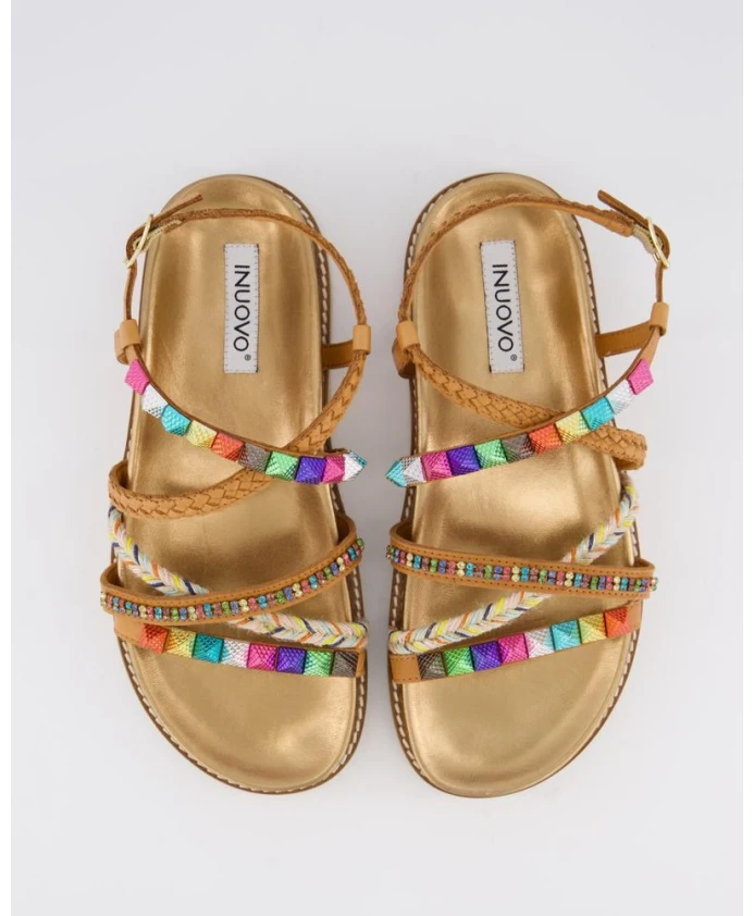 Бежевые сандалии с множеством ремешков Gibaldi, мультиколор