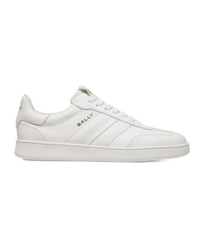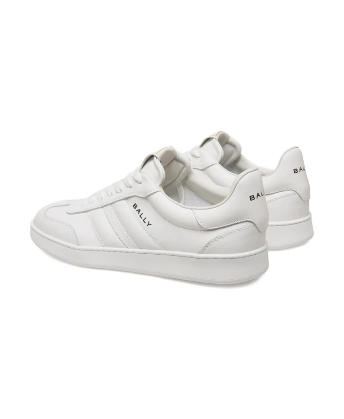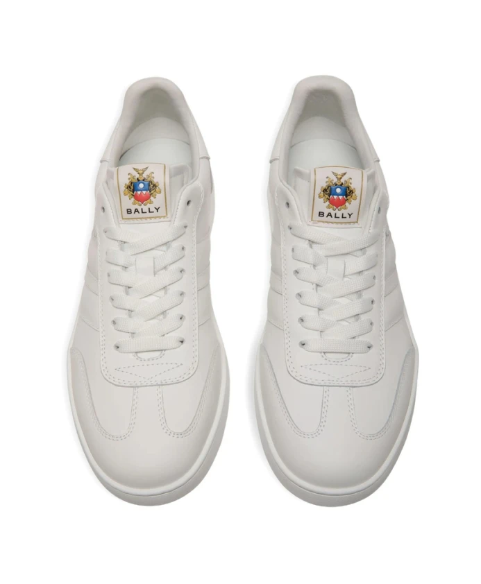 Подчеркните свой стиль с помощью этих мужских кроссовок Bally, выполненных из белой телячьей кожи, с фирменным ремешком и шнуровкой.