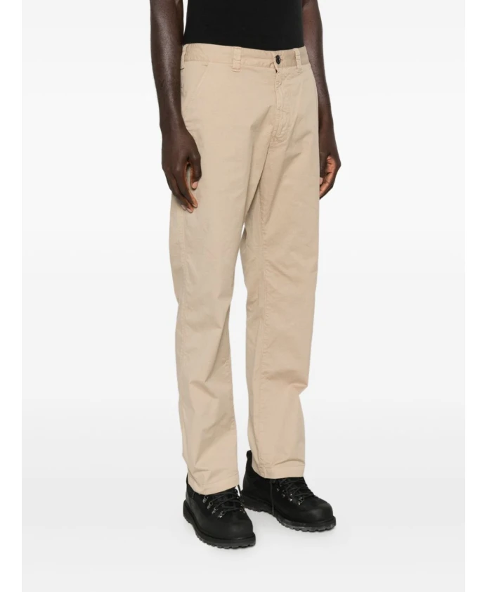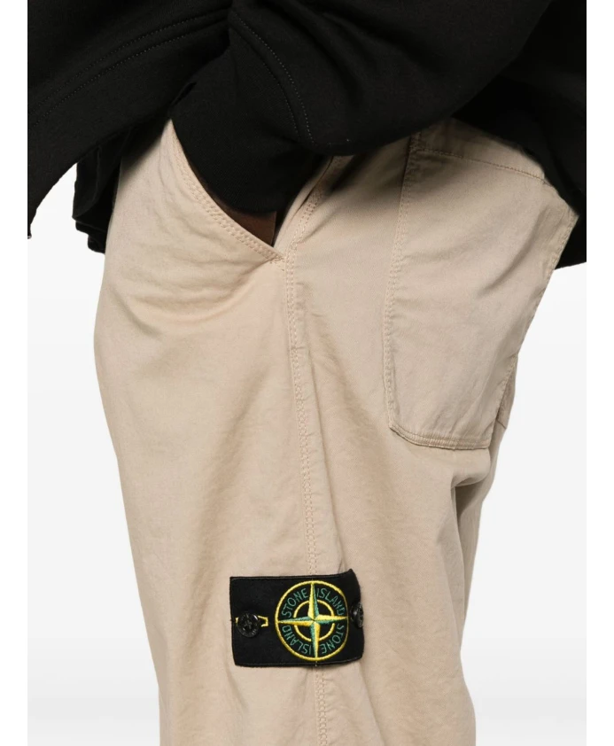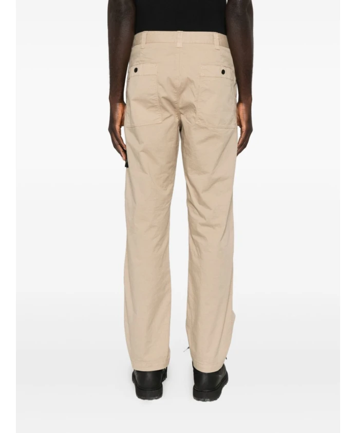 Мужские бежевые брюки прямого кроя Stone Island с накладными карманами, застежкой на пуговицы, прямым кроем и нашивкой с логотипом.