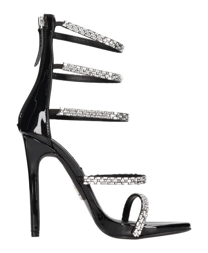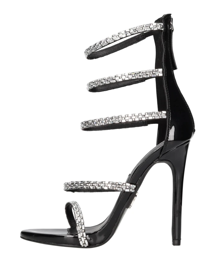 Сандалии на высоком каблуке из материала Ecopelle от Steve Madden, украшенные стразами, с тисненой подошвой из искусственной кожи.