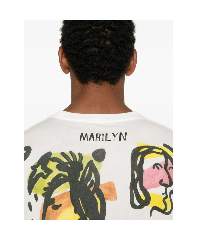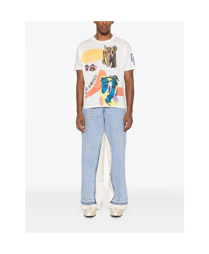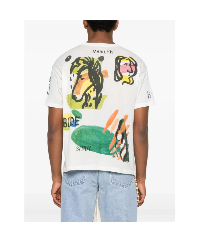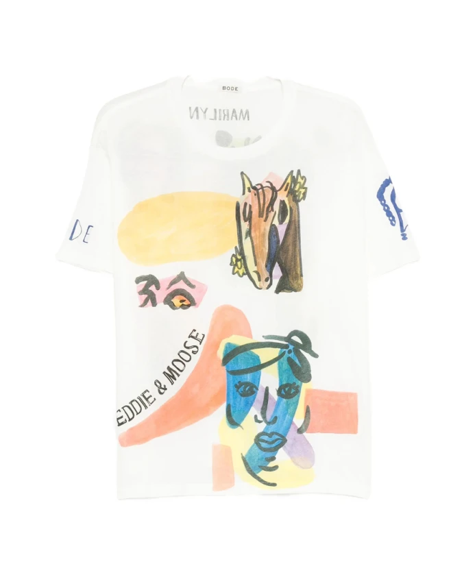 Мужская футболка Bode с коротким рукавом и круглым вырезом, с абстрактным принтом головы белой лошади, изготовлена из 100% хлопка.