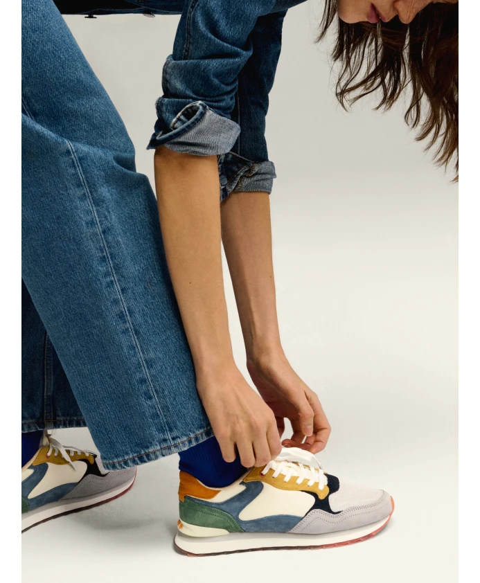 Кроссовки в стиле ретро, сочетающие в себе различные материалы и цвета. Шнуровка. Логотип на задней части. Высота подошвы: 3 см.