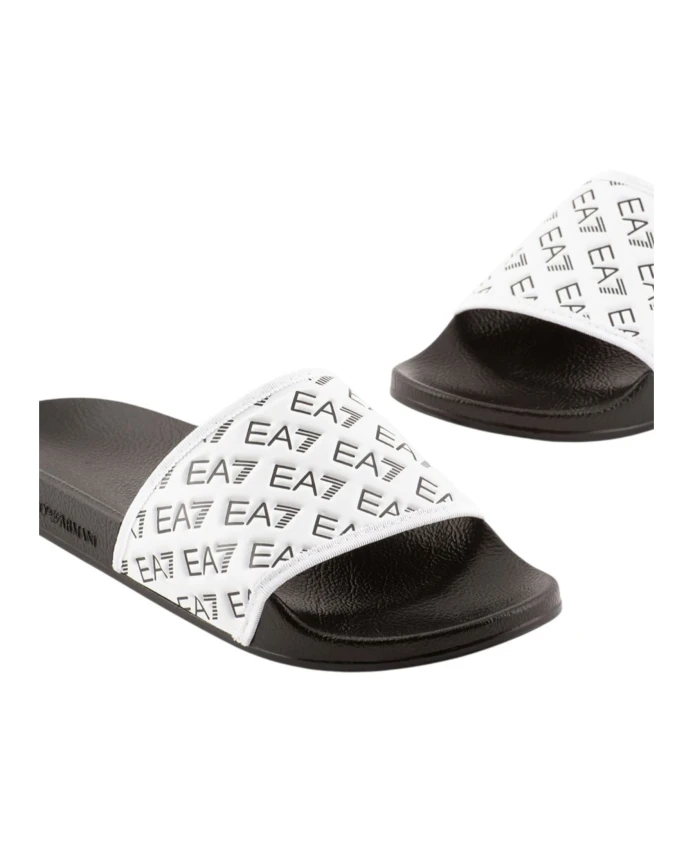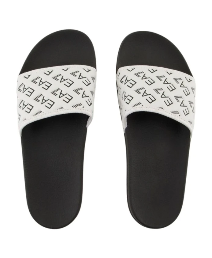 Произведите фурор своим появлением в этих белых шлепанцах и сандалиях от EA7 Emporio Armani, созданных для современного мужчины.