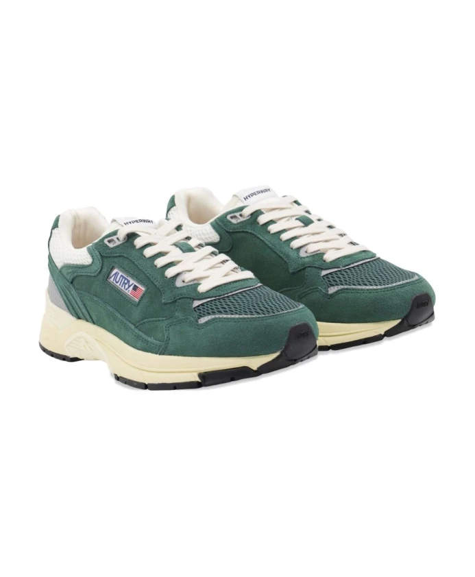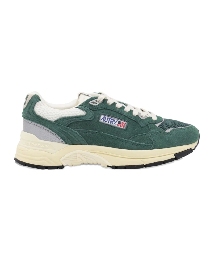 Мужские кроссовки Autry зеленого цвета с сетчатыми и замшевыми элементами, мягким язычком, резиновой подошвой и логотипом сбоку.
