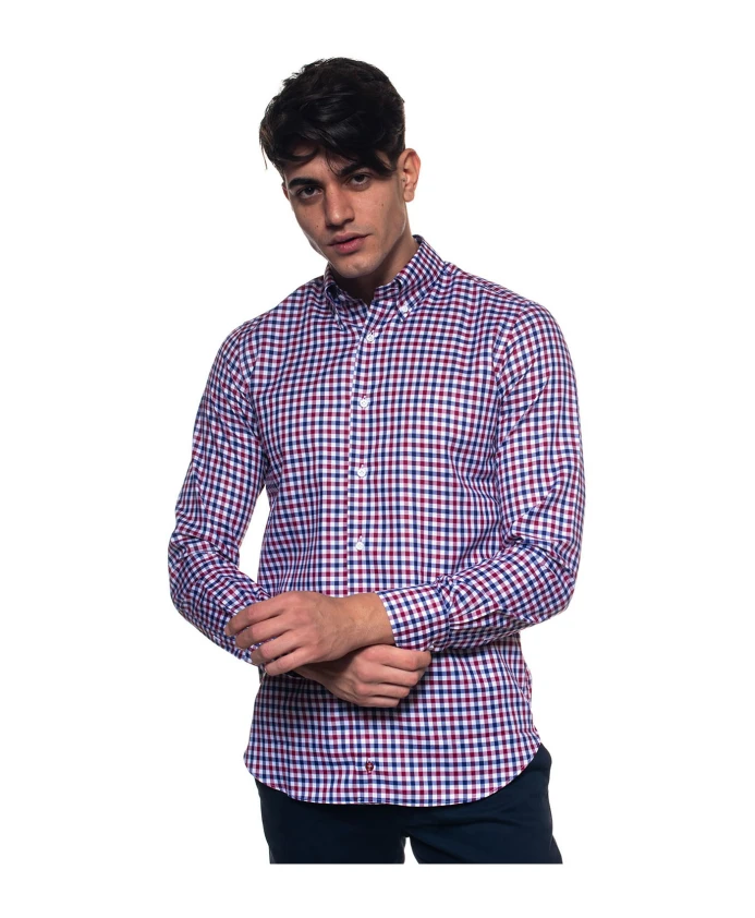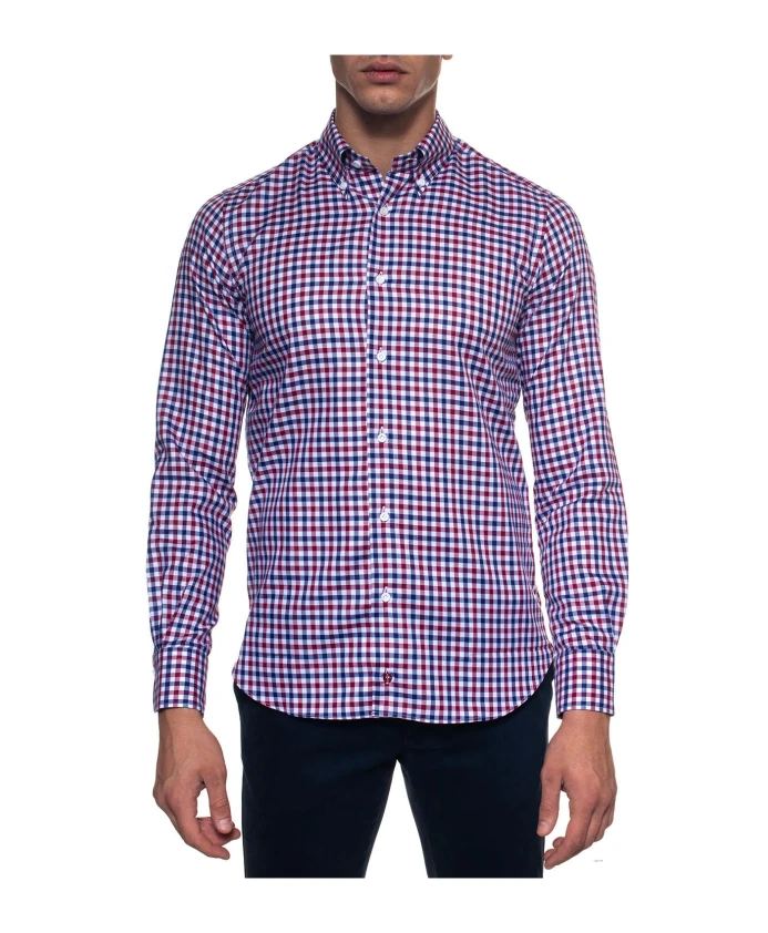 Повседневная рубашка, воротник на пуговицах, в клетку, сделано в Италии, классический крой, состав: 100% хлопок, бренд: CARREL.