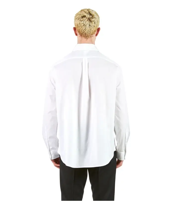 Рубашка из чистого хлопкового поплина свободного кроя с накладным карманом, украшенная монограммой и резиновой нашивкой сбоку.