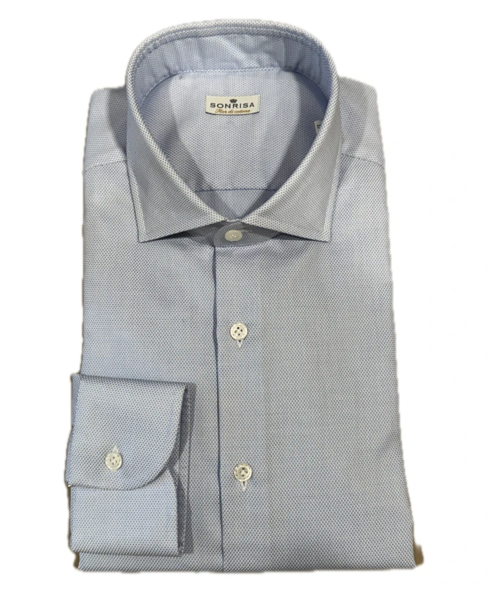 Подчеркните свой повседневный стиль с помощью этой хлопковой рубашки Sonrisa небесно-голубого цвета с микроузором для мужчин.