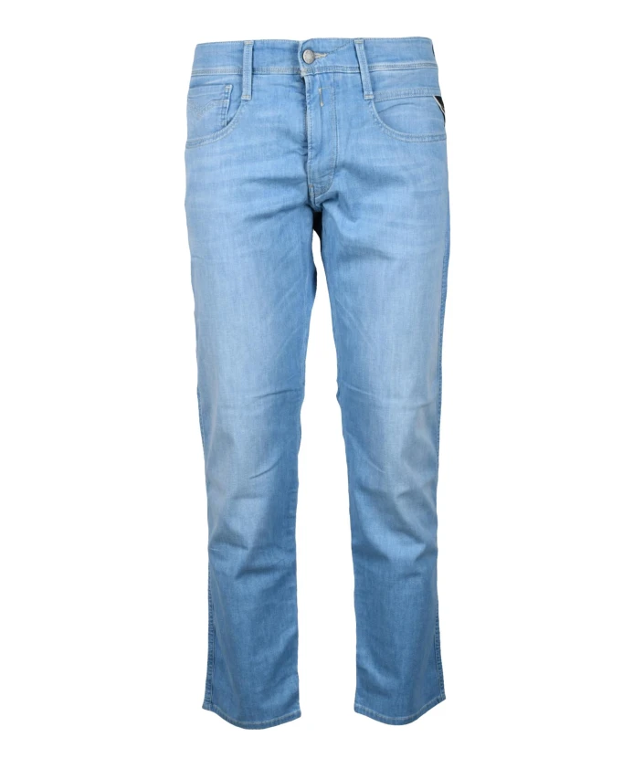 Мужские джинсы Replay зауженного кроя, изготовленные из смеси 80% хлопка, 12% лиоцелла, 5% эластомультиэстера и 3% эластана.