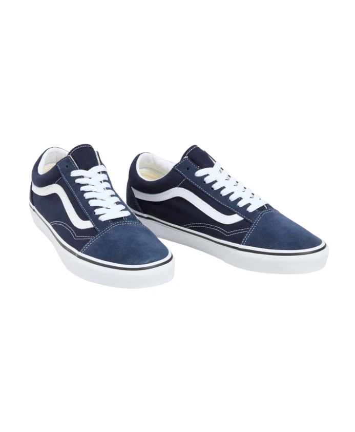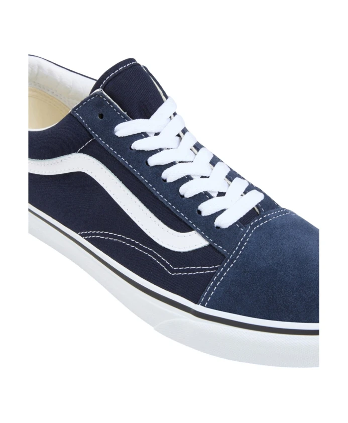 Мужские спортивные кроссовки Vans синего цвета, изготовленные из текстильного материала, с резиновой подошвой высотой 3 см.