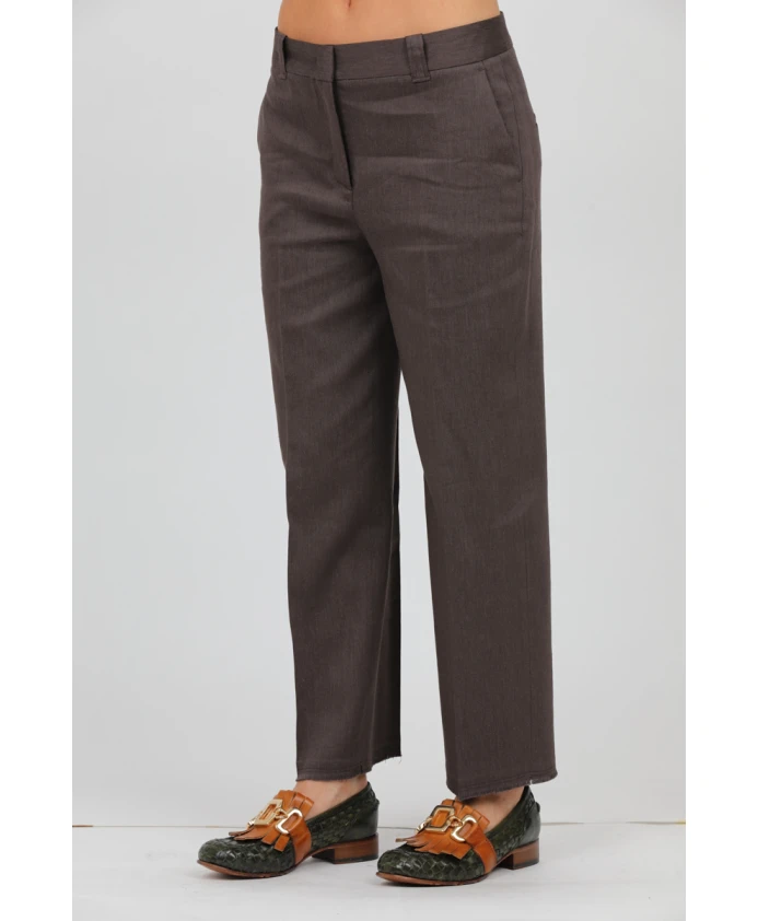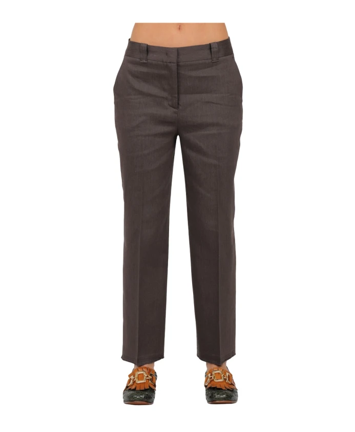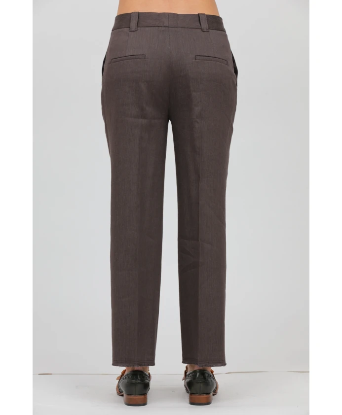 Эластичные брюки из льна и вискозы Via Masini 80, коричневый