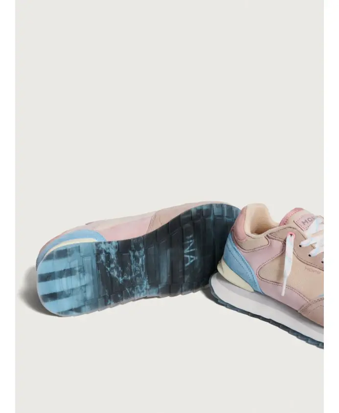 Кроссовки в стиле ретро, сочетающие в себе различные материалы. Шнуровка. Логотип на задней части. Высота подошвы: 3 см.
