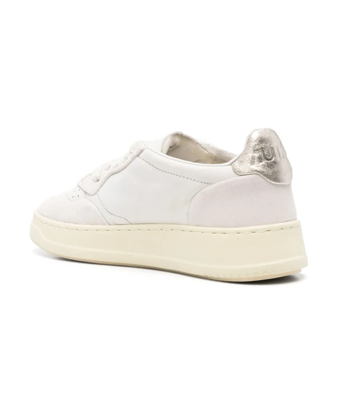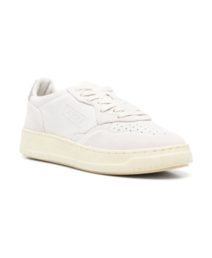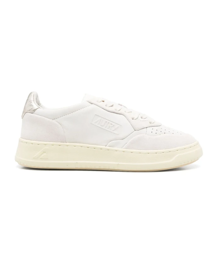 Белые кроссовки Autry для женщин с передней шнуровкой, перфорированным носком, фирменной стелькой и закругленным носком.