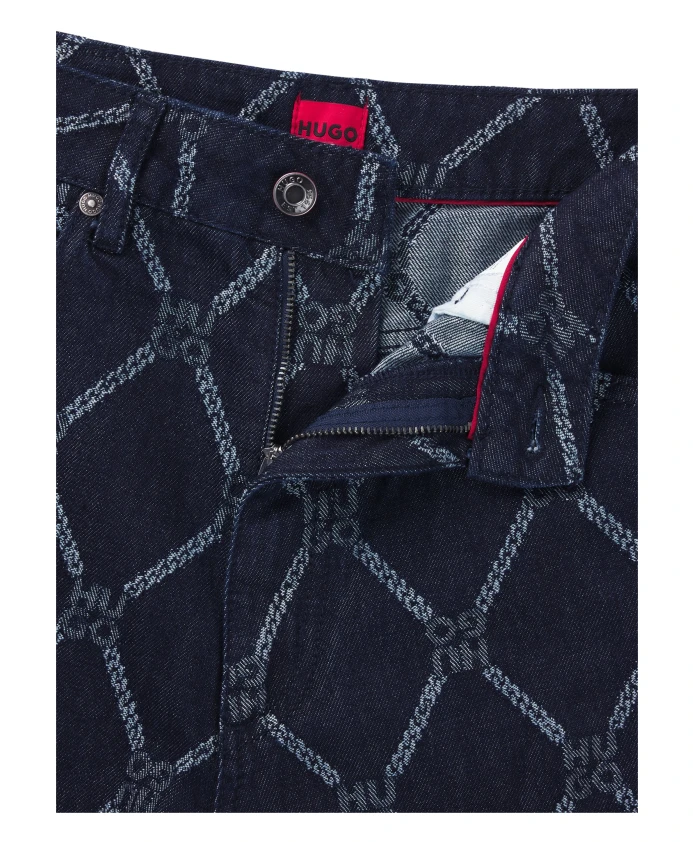 Выделитесь из толпы в этих джинсах HUGO. Широкий крой, плотный синий деним, украшен логотипом Stack по всей поверхности.