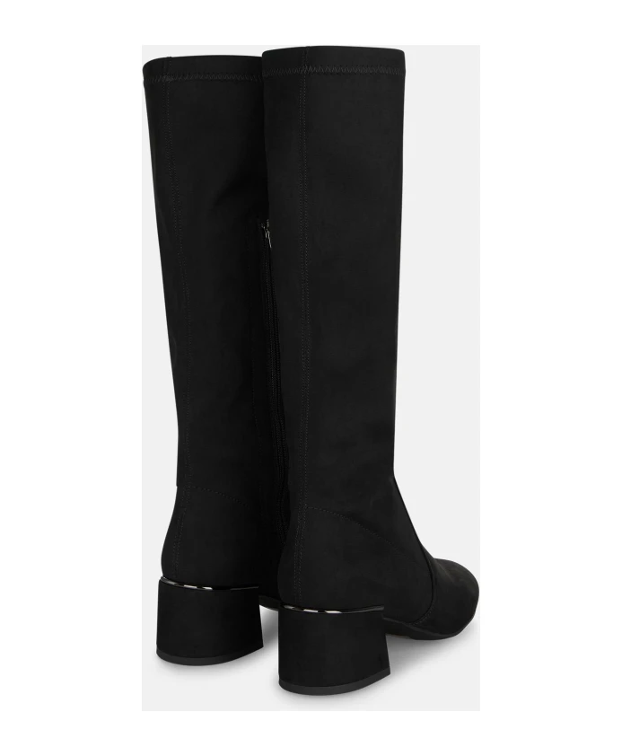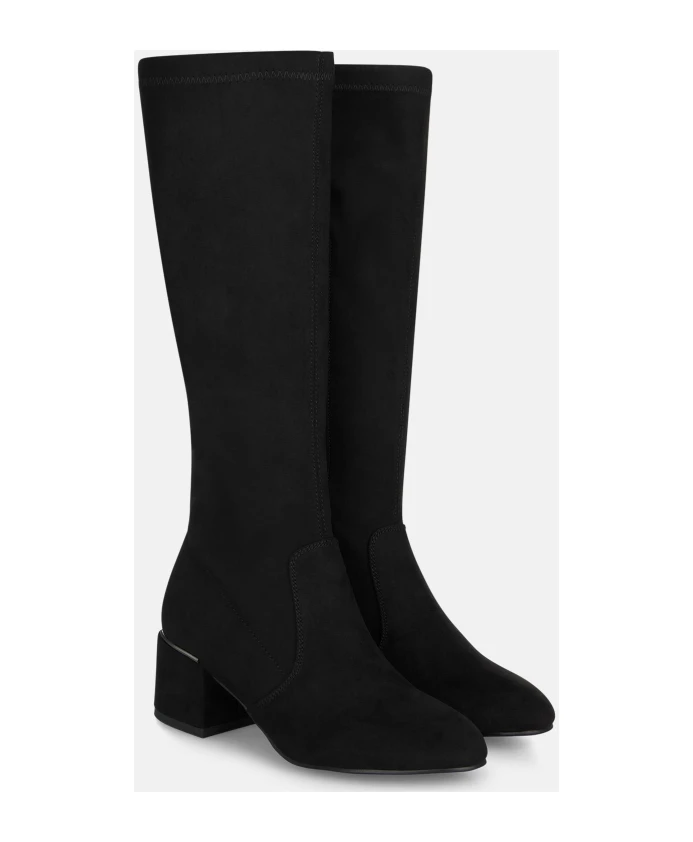 Женские сапоги на каблуке, с закругленным носком и застежкой-молнией. Высота каблука: 5,5 см, высота голенища: 17,5 см.