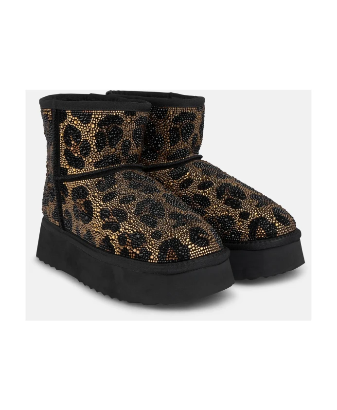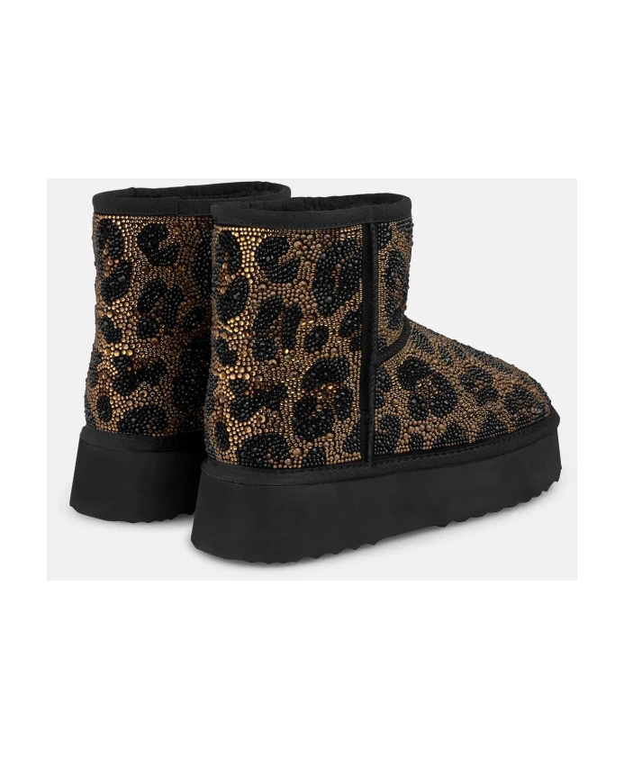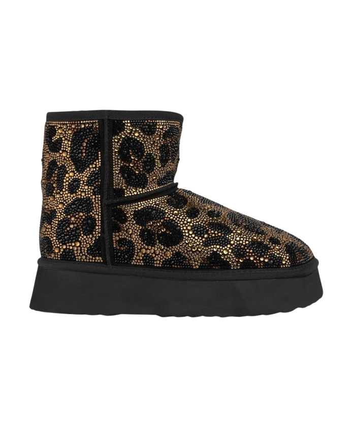 Женские ботильоны с мехом и стразами. Закругленный носок, без застежки. Высота каблука: 3,5 см, высота голенища: 11 см.