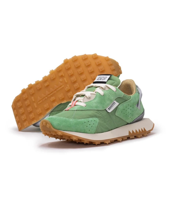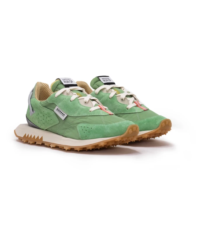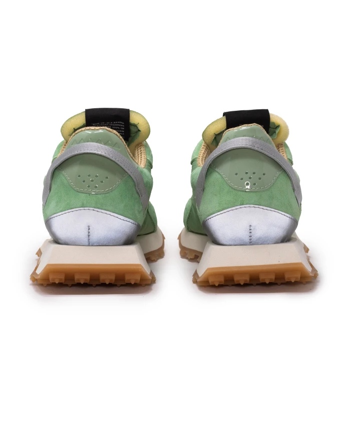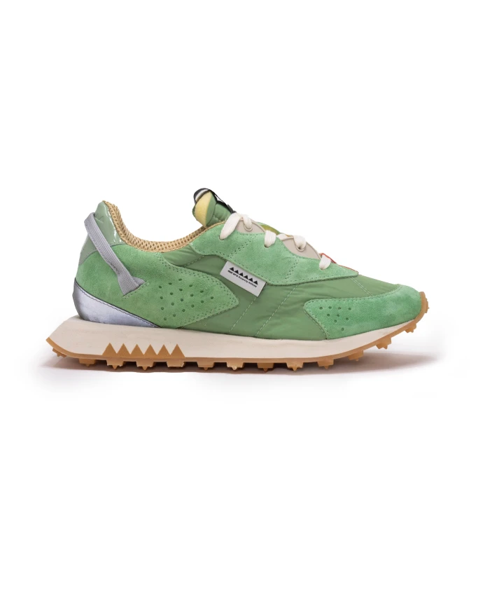 Зеленые кроссовки из натуральной кожи и синтетической ткани, резиновая подошва белого/медового цвета. Сделано в Италии.