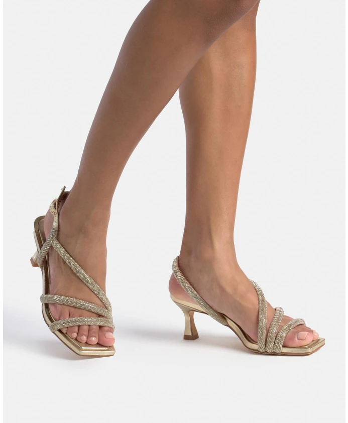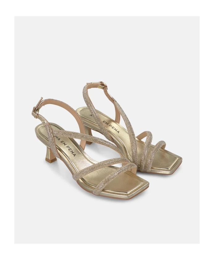 Босоножки на каблуке с полосками, имитирующими змеиную кожу, квадратный носок. Эластичный ремешок, высота каблука 9 см.