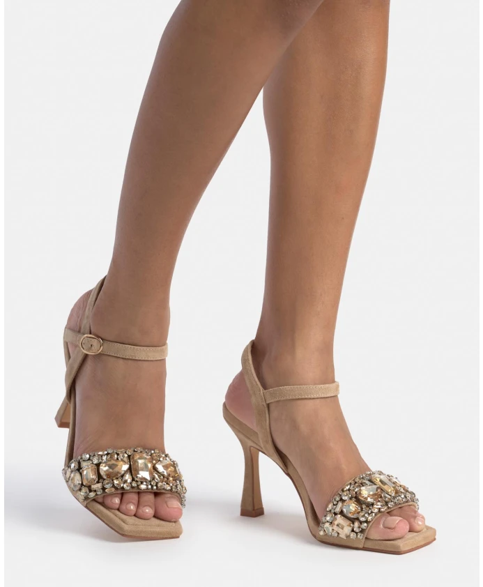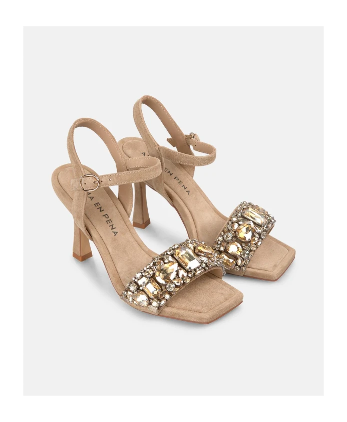 Босоножки на каблуке, декоративная пряжка на ремешке вокруг щиколотки, квадратный носок. Пряжка, высота каблука 9 см.