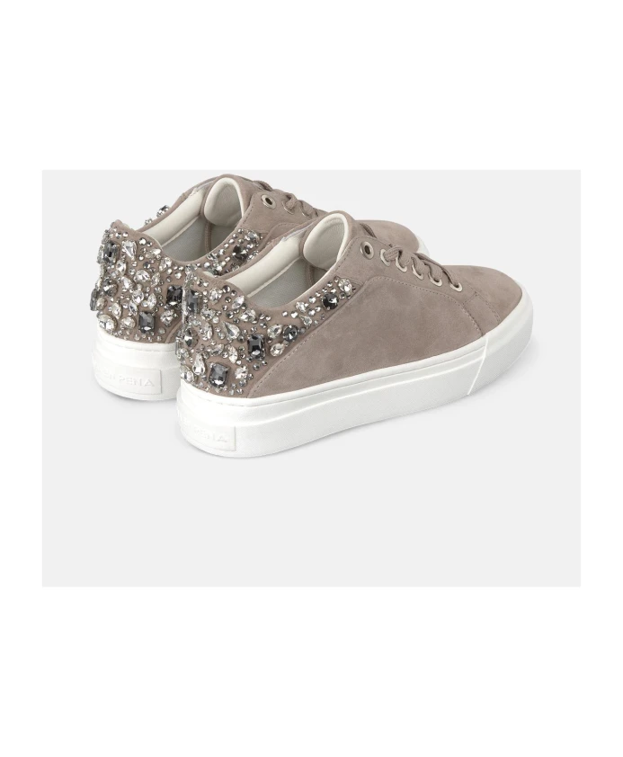 Женские кроссовки на плоской подошве, украшенные стразами. Шнуровка и закругленный носок. Подошва на платформе 4 см.