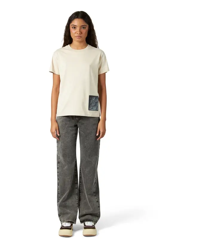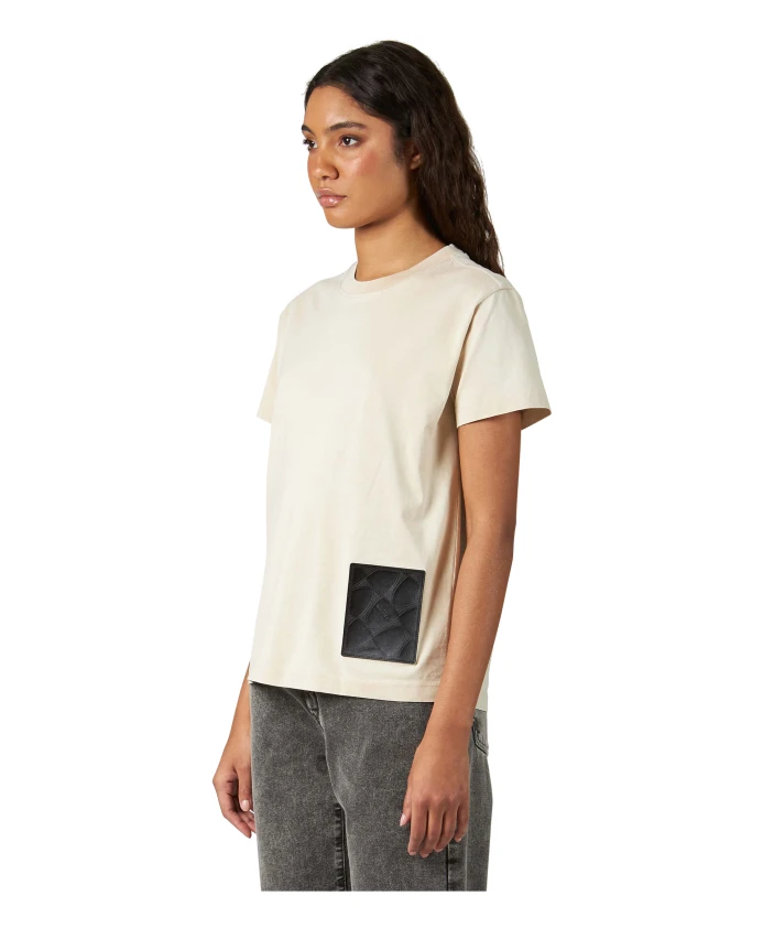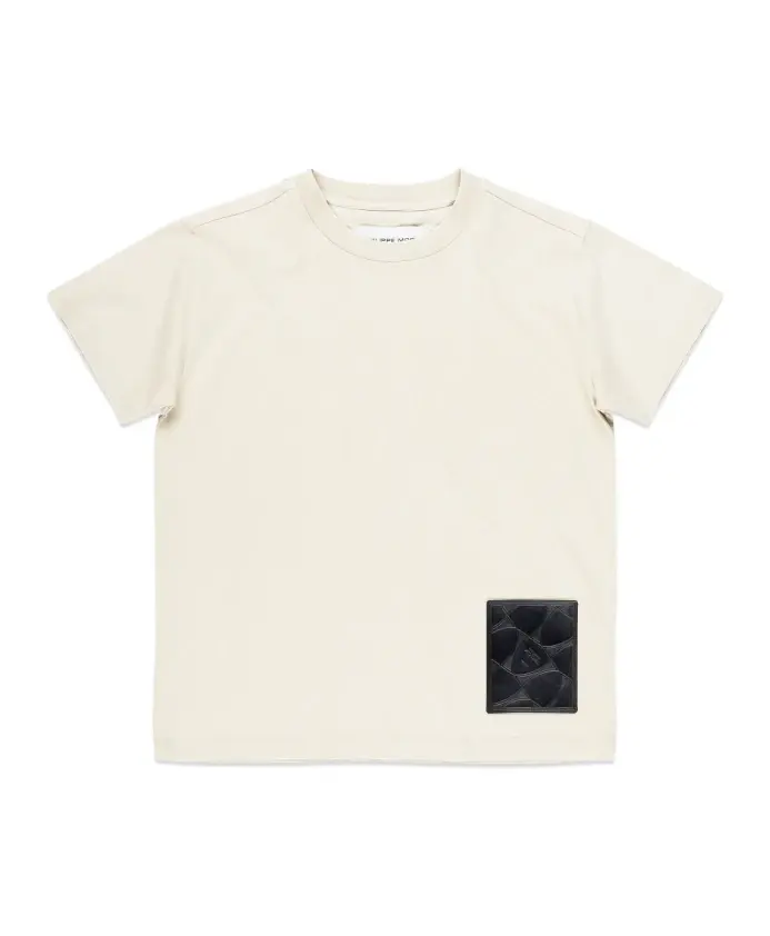 Футболка из чистого хлопкового трикотажа с прорезиненной нашивкой внизу, украшенной монограммой. Стандартный крой.