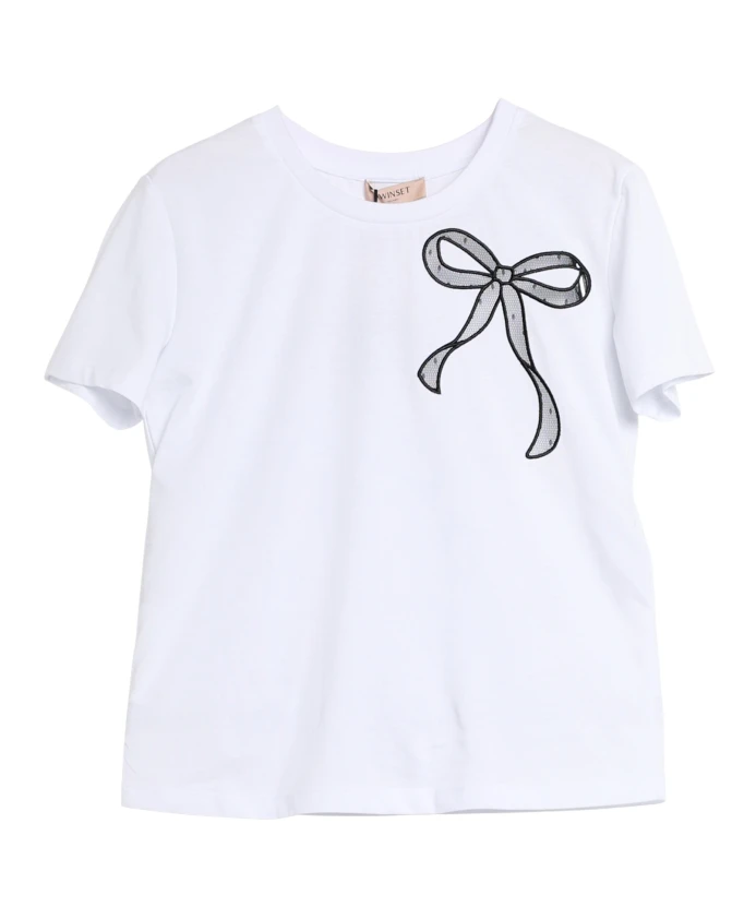 Черная футболка с бантом Twinset, белый