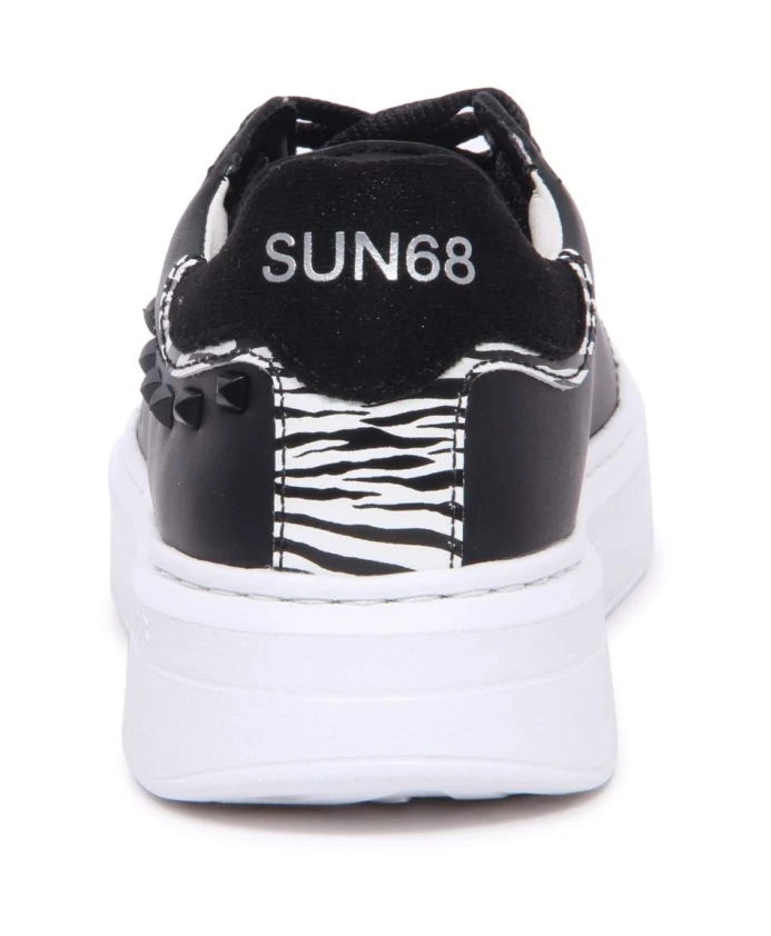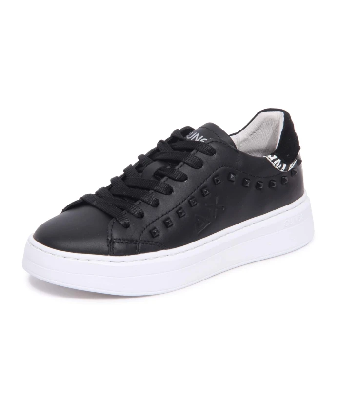 Подчеркните свой стиль с помощью этих женских кроссовок Sun68 из черной кожи с заклепками. Модель: Z43225 11 NERO.