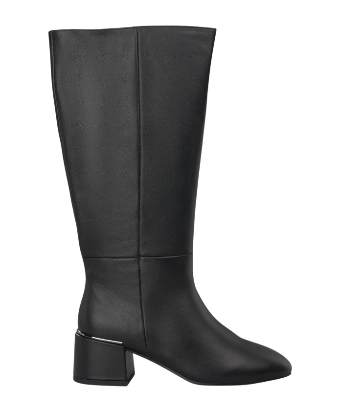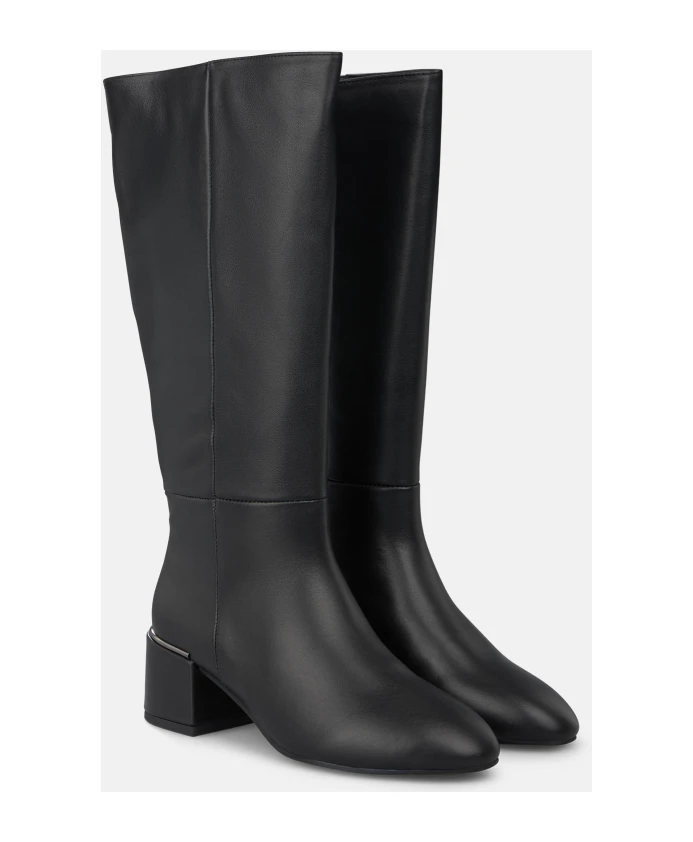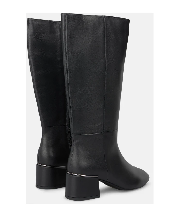 Женские сапоги на каблуке с закругленным носком и застежкой-молнией. Высота каблука 5,5 см, длина голенища 20 см.