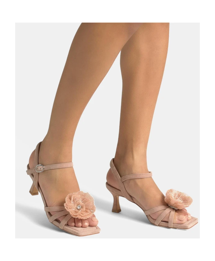 Сандалии на небольшом каблуке, с перекрещивающимися ремешками и квадратным носком. Пряжка и высота каблука 6 см.