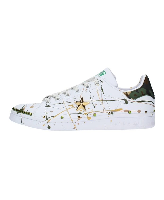 Женские кроссовки Adidas из искусственной кожи с резиновой подошвой и подкладкой из искусственной кожи и ткани.