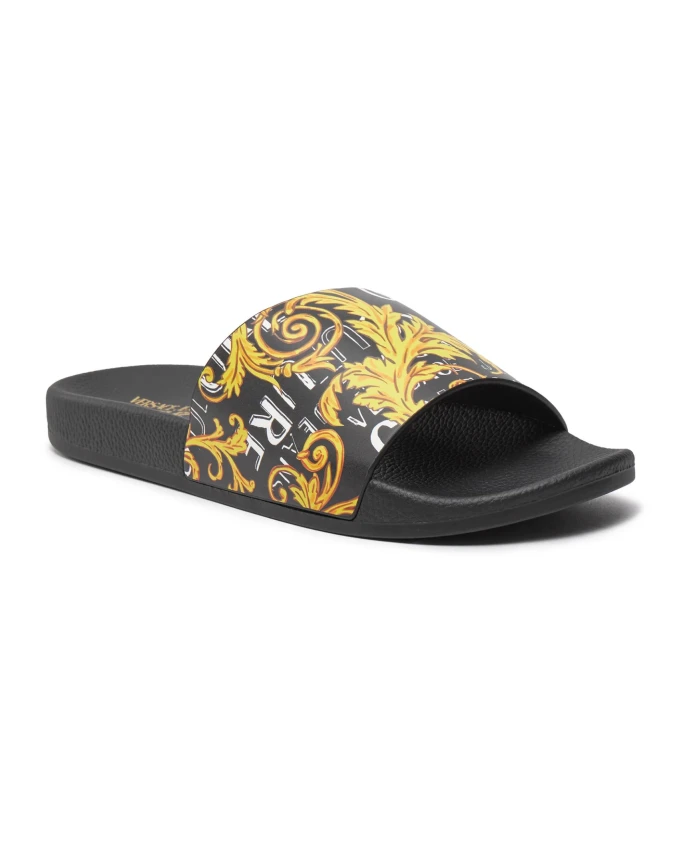Подчеркните свой летний стиль с помощью этих черных шлепанцев и сандалий от Versace Jeans Couture для мужчин.
