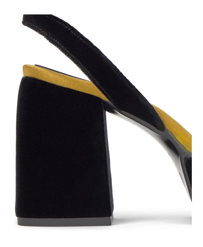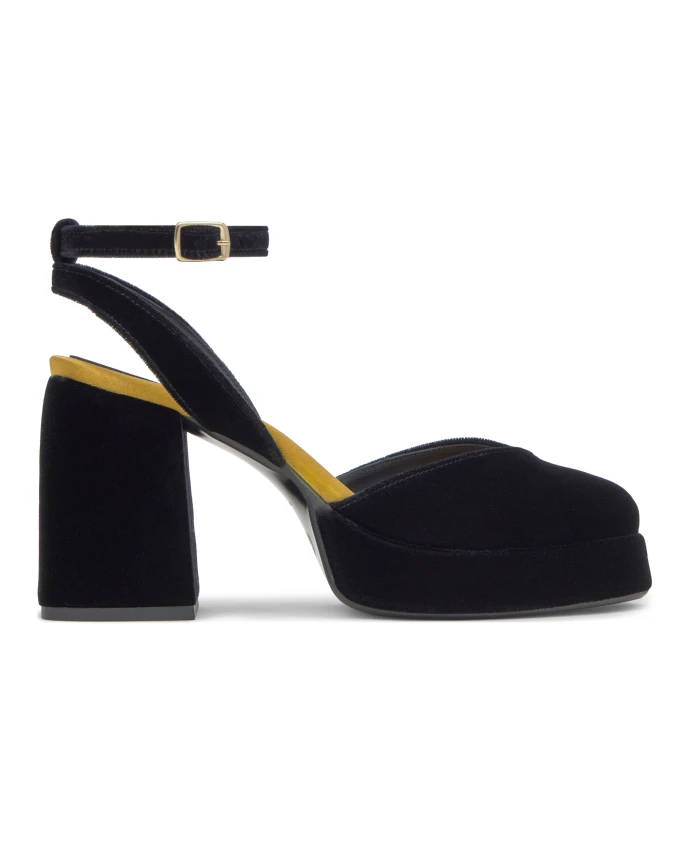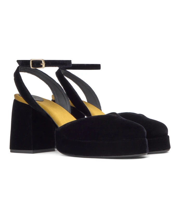 Бархатные туфли Verona с ремешком на щиколотке, золотистой мягкой стелькой и каблуком высотой 10 см в тон.
