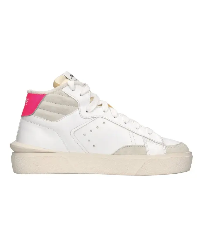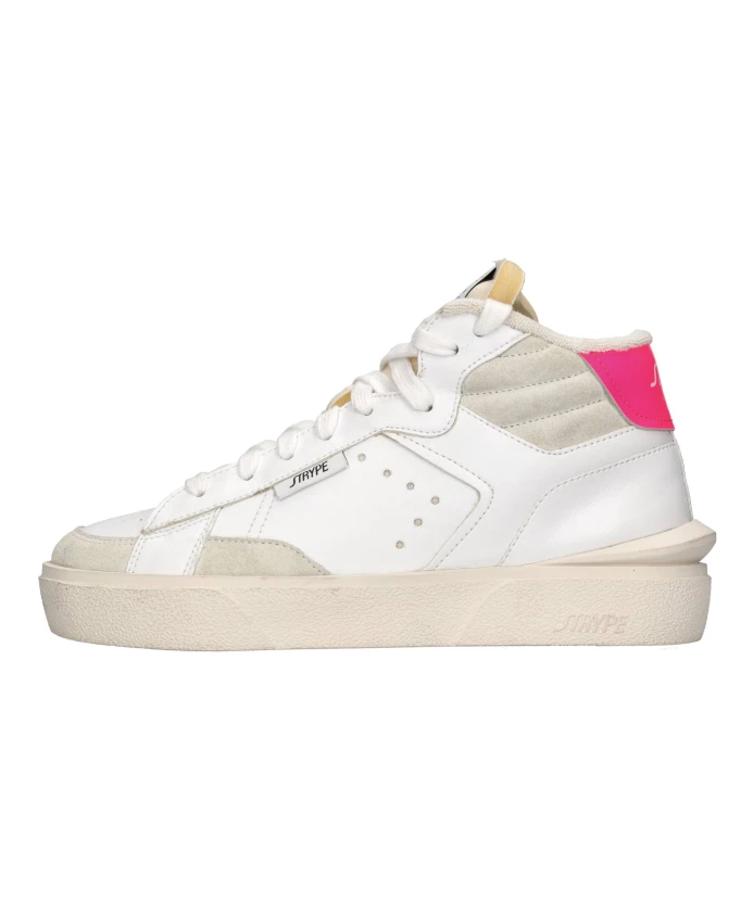 Женские кроссовки Strype из кожи и ткани. Тканевая подкладка. Резиновая подошва. Флуоресцентные детали.