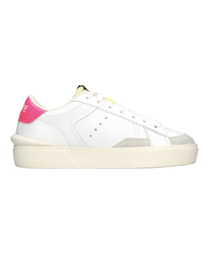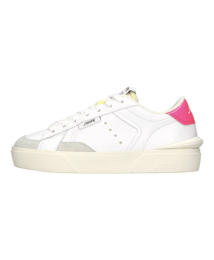 Женские кроссовки Strype из кожи и ткани. Резиновая подошва. Тканевая подкладка. Флуоресцентные детали.
