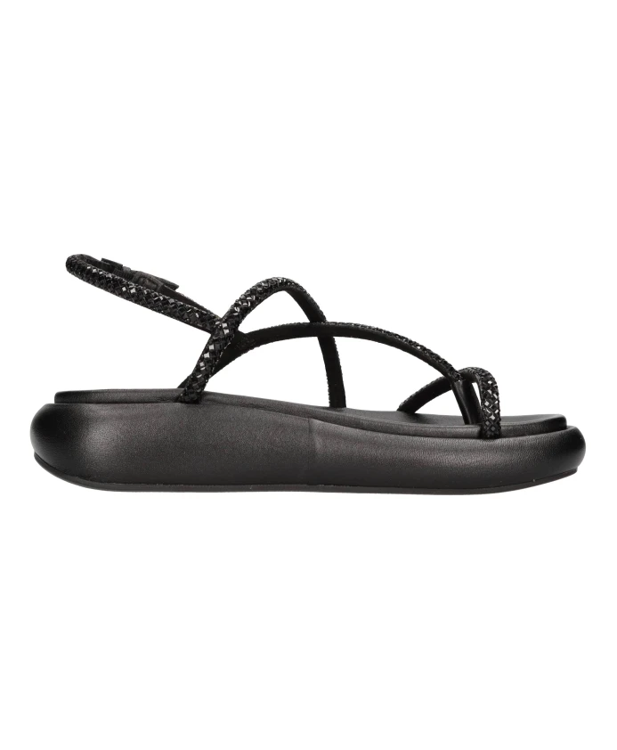 Женские сандалии-балетки ASH из кожи со стразами. С фирменной резиновой подошвой и кожаной стелькой.