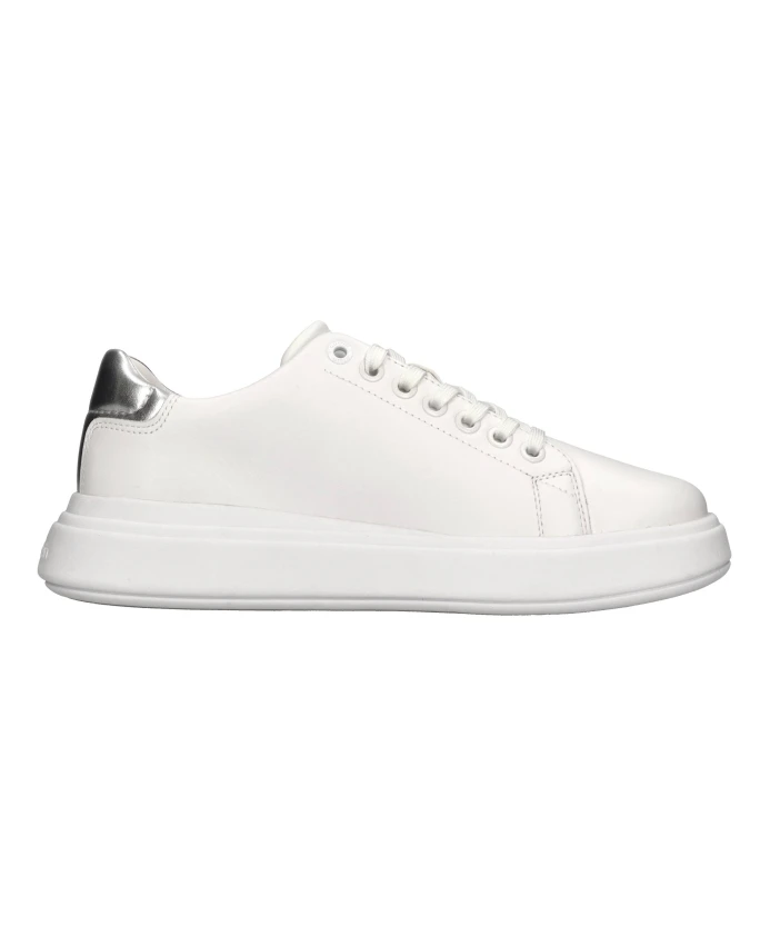 Женские кожаные кроссовки Calvin Klein с фирменной резиновой подошвой и подкладкой из кожи и ткани.