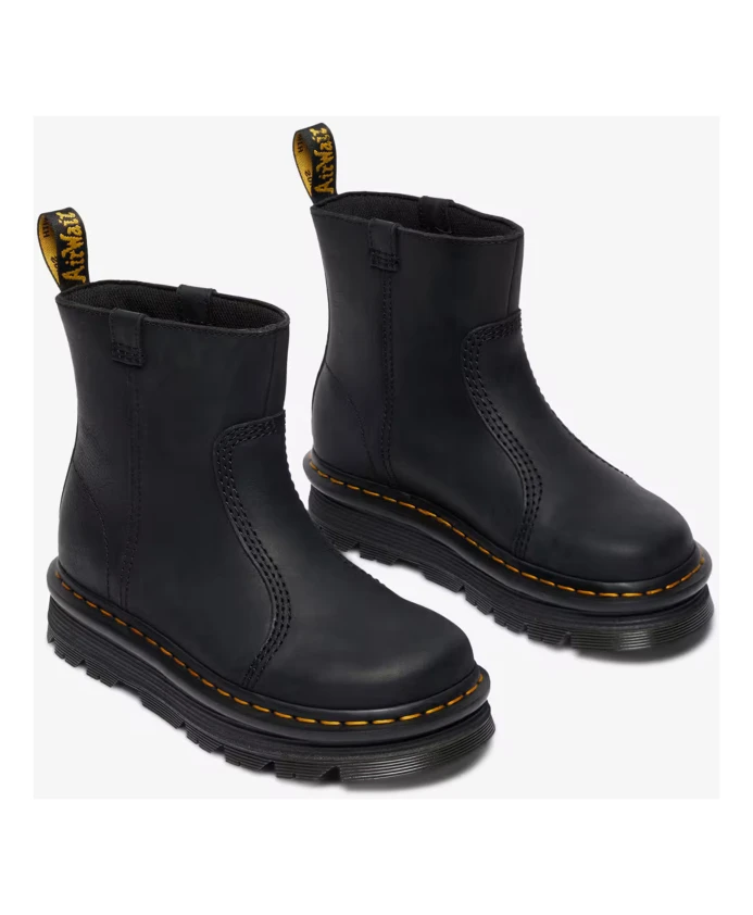 Подчеркните свой стиль с помощью этих женских ботильонов Dr. Martens BLACK WYOMING ZEBZAG RIGGER.