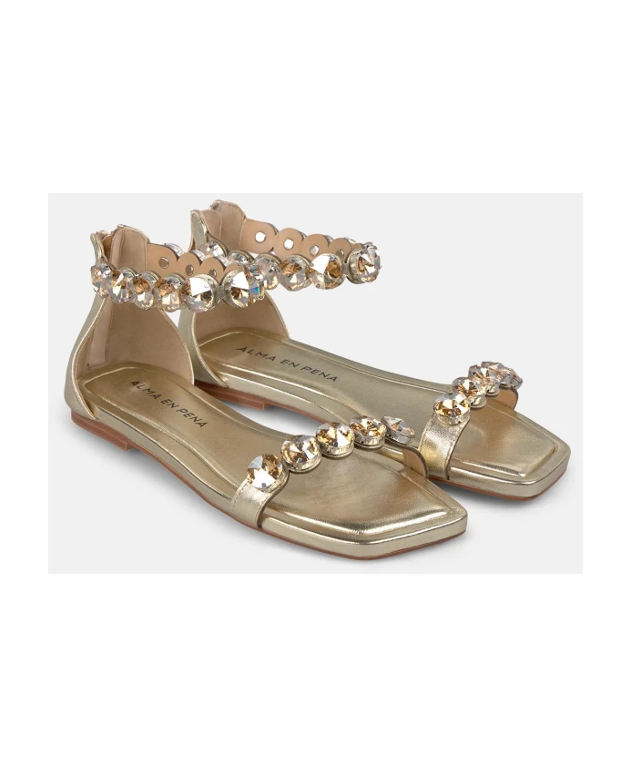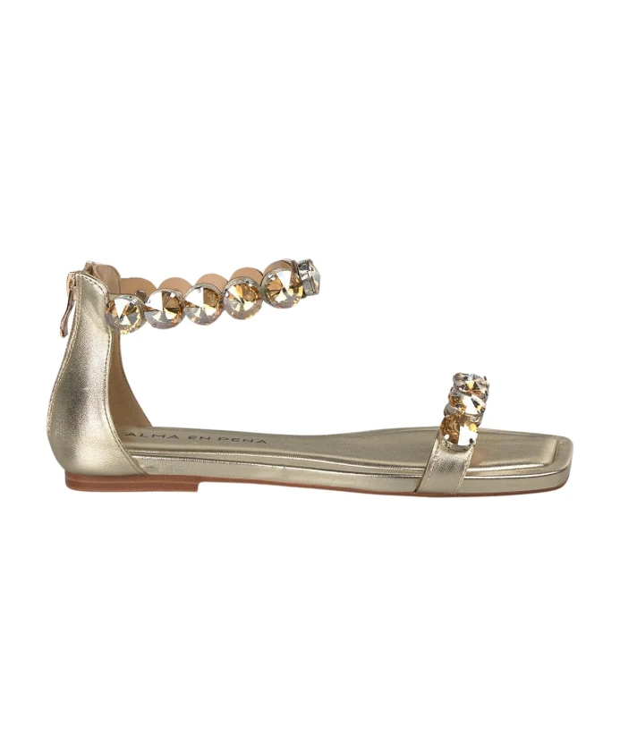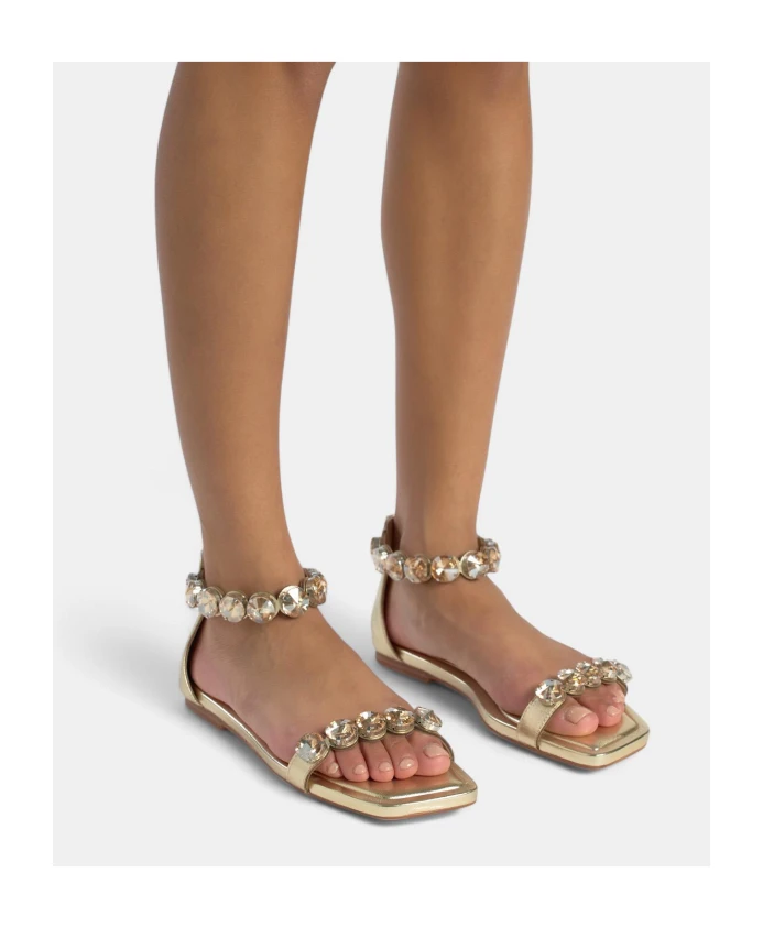 Плоские сандалии с отделкой из страз в форме моря, квадратный носок. Пряжка, высота каблука 1 см.