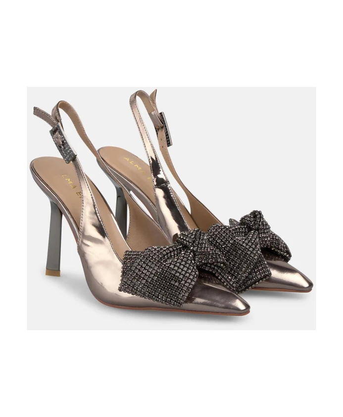 Туфли на каблуке с бантом из страз. Alma En Pena, серый