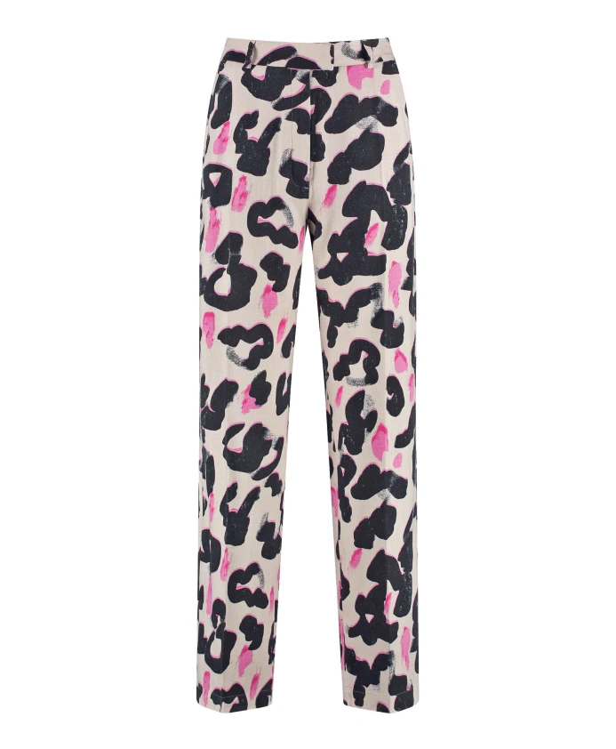 Широкие летние брюки с леопардовым принтом, повседневный стиль. Состав: 70% вискозы и 30% льна.