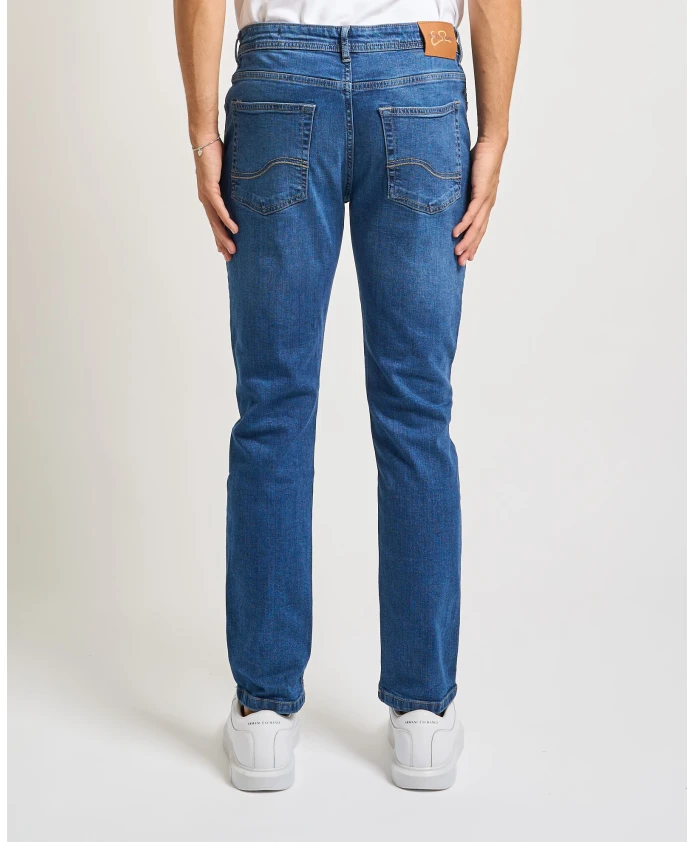 Мужские джинсы YES ZEE зауженного кроя, модель ID 0302, изготовлены из хлопчатобумажной ткани.