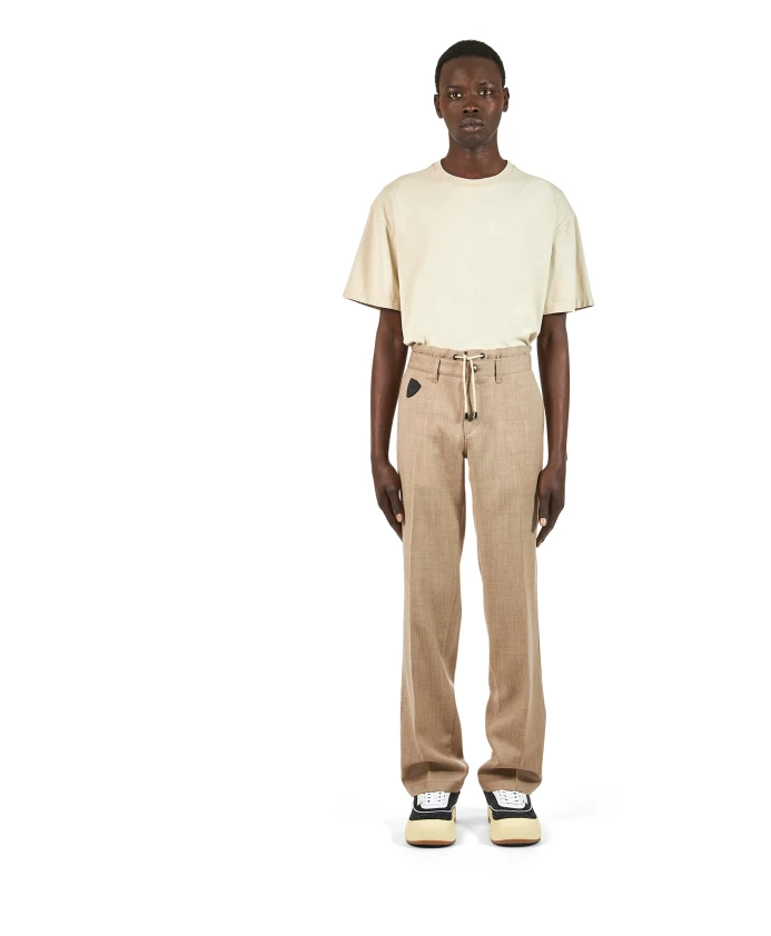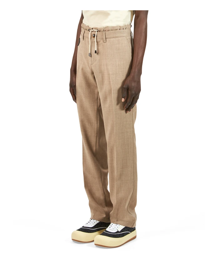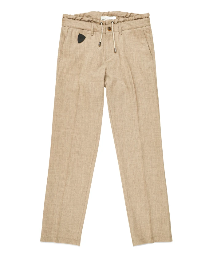 Брюки из чистой шерстяной фланели с застежкой на две пуговицы и шнурком. Стандартный крой.