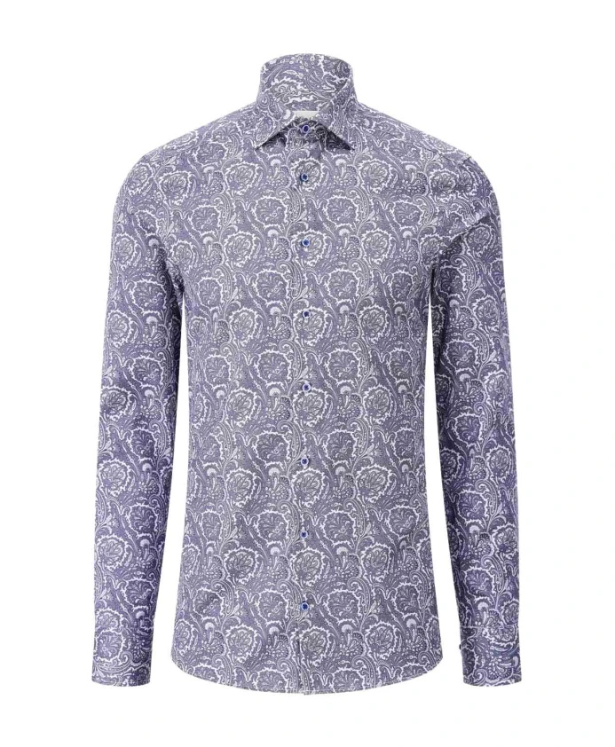 Классика в современном исполнении: эта приталенная рубашка со стильным узором «пейсли» добавит изюминку любому образу. Удобный крой обеспечивает комфорт при ношении, а изысканный дизайн излучает уверенность и стиль.