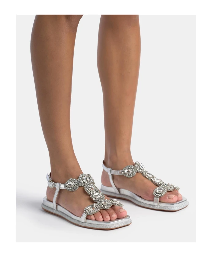 Сандалии со стразами и жемчугом Alma En Pena, серый