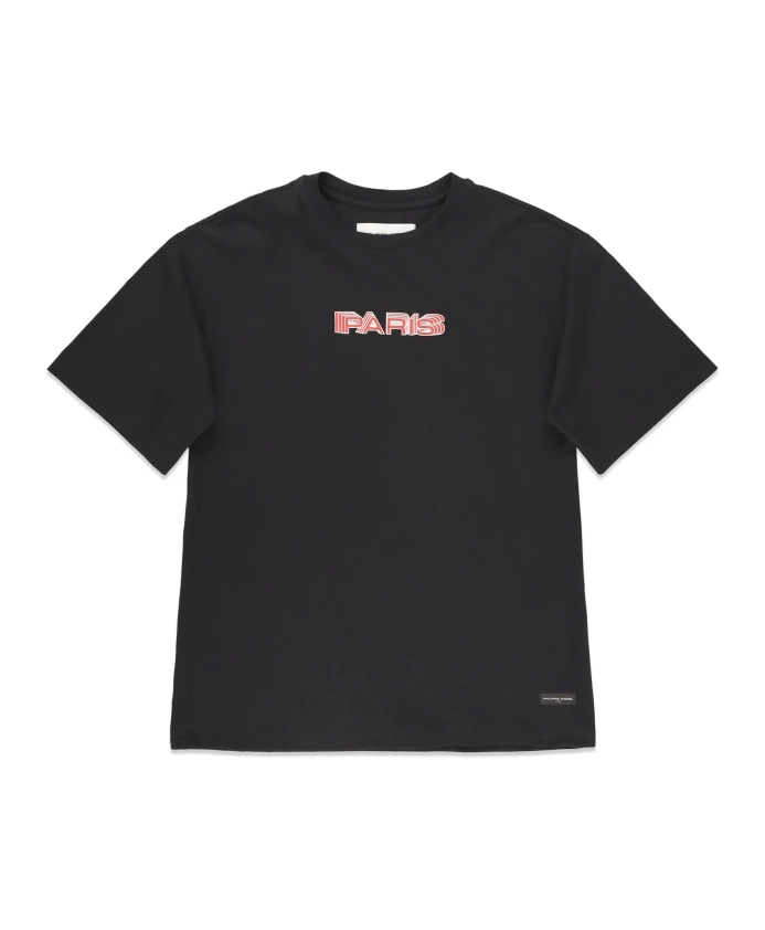 Футболка из чистого хлопкового трикотажа с прорезиненным геометрическим узором на груди.